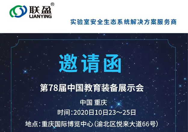 联盈企业诚挚邀请各位莅临 ——《第78届中国教育装备展示会》 展位号:S4008 时间:2020年10月23日~25日 地点:重庆市国际博览中心( 渝北区悦来大道66号)
