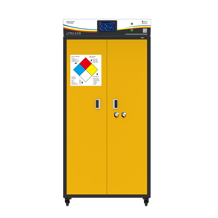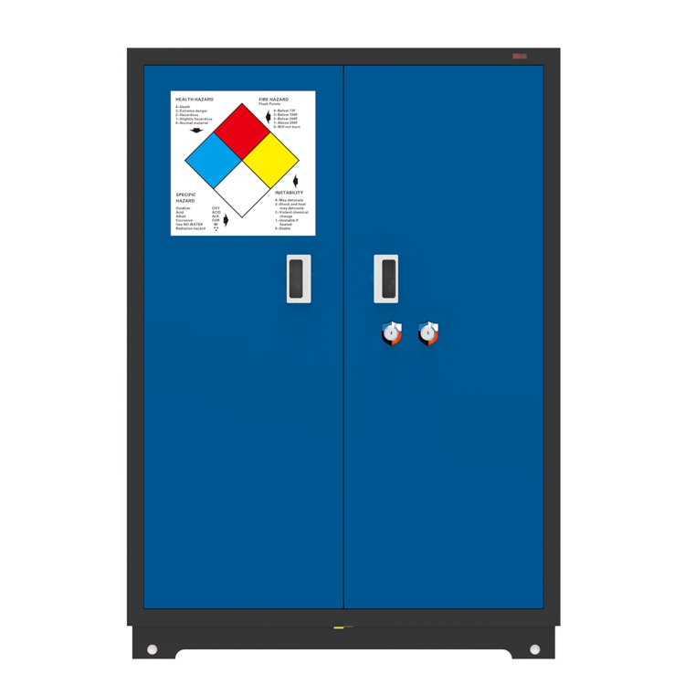 LY-SC22美标防燃安全储存柜专业化学品安全储存柜,专为规范存储易燃及可燃物质而设计。严格遵循OSHA色标体系,提供红、黄、蓝、白四色分区,红(可燃液体)、黄(易燃液体)、蓝(弱酸腐蚀性液体)、白(毒性化试剂)四种颜色储存不同类型化学品,实现危险化学品的视觉化分类管理与快速识别。不仅提升日常管理效率,更在紧急情况下助力消防人员精准判别风险,保障应急处理安全高效,显著降低事故隐患。
