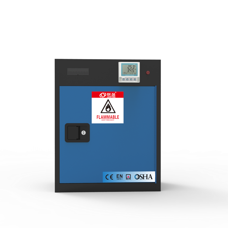 LY-SC12美标防燃安全储存柜专业化学品安全储存柜,专为规范存储易燃及可燃物质而设计。严格遵循OSHA色标体系,提供红、黄、蓝、白四色分区,红(可燃液体)、黄(易燃液体)、蓝(弱酸腐蚀性液体)、白(毒性化试剂)四种颜色储存不同类型化学品,实现危险化学品的视觉化分类管理与快速识别。不仅提升日常管理效率,更在紧急情况下助力消防人员精准判别风险,保障应急处理安全高效,显著降低事故隐患。