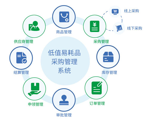 供应商管理,商品管理,采购管理(在线采购,线下自购),订单管理,审批管理,结算管理等。采购安全省心、报销经费省时、入库/出库一码管理。
