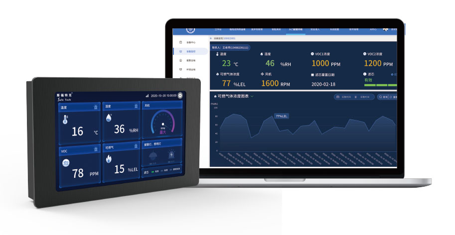 可通过手机移动端远程实时监控查询安全柜内及排风口的有害气体浓度,以及对温湿度、风机转速、风机模式、报警参数等指标;并可通过手机移动端远程控制安全柜风机启停、风机模式、风机转数等功能。