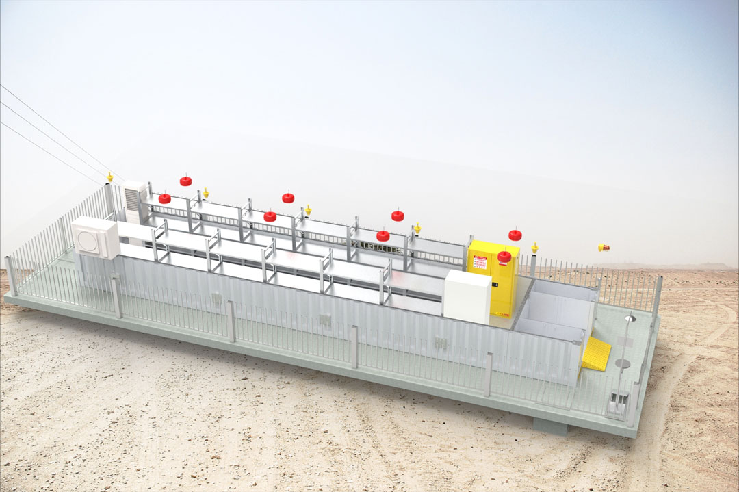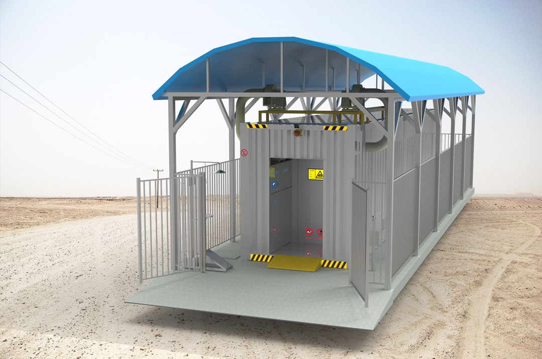 整体设施包含箱体、防爆电路系统、照明系统、温控系统、逃生系统、消防系统、泄爆系统、视频监控系统、通风过滤系统、漏液回收系统、个人防护系统、内部存储系统、门禁系统、智能控制嵌入式硬件系统
