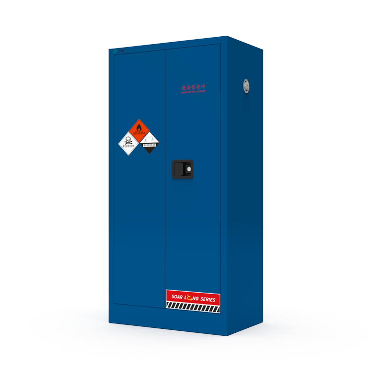 实验室废液暂存柜专为腐蚀性、有毒化学品规范存储而设计,重点突出六大核心优势:柜体采用防火膨胀密封件(符合GB16807-2009),有效阻隔火势蔓延;配备双机械/密码锁系统,符合GA/T73标准,实现双人双锁安全管理;每层设防漏液孔及硅胶导管,可集中收集漏液,防止交叉污染;两侧配置防爆通风口,支持外接排风系统;柜底装带刹车万向轮,移动灵活、定位稳固;柜门贴有耐腐蚀警示标签,强化操作安全意识,全面保障危化品存储与使用安全。